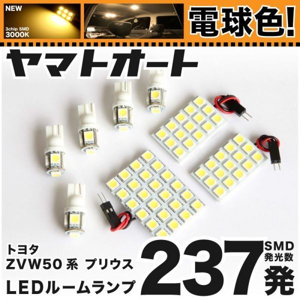 > ◆プリウスPHV ZVW52 トヨタ ★電球色237発★ LED ルームランプ 8点 暖色 3000K パーツ ライト PRIUS 室内灯 車内 アクセサリー