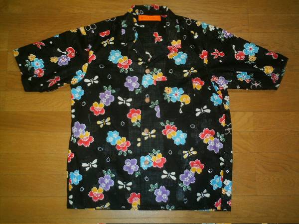 - ☆手作り☆ ゆかた地アロハ 黒 L 新品 送無料あり