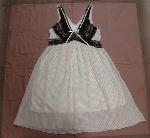 - ■美品:marna胸元レース&ストライプ+ドット柄チュニック M DmK74
