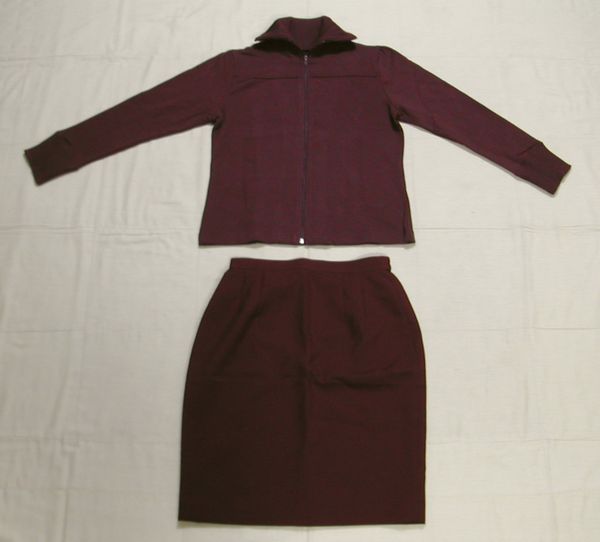- ■タグ無新品:エンジ系上下 ジャンパー&スカート L DmM74
