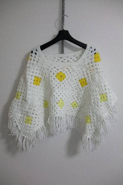 - ☆☆送料無料☆☆あみあみ花柄ポンチョ★フリンジ★USA買い付け★USED★民族柄★z20