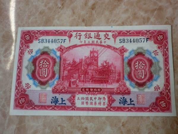 - ★ 中華民国 交通銀行 拾圓 極上美品 ★ No.448