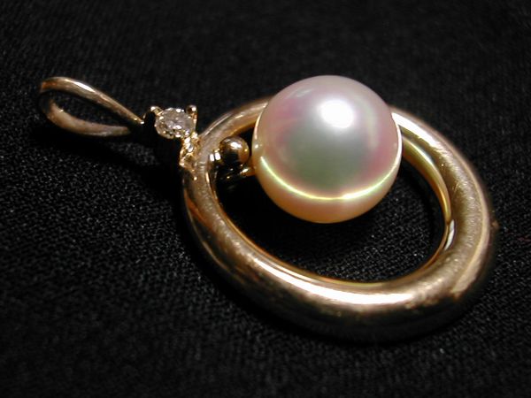 - ■美品:K14リングの中央に真珠+ダイヤ?のペンダントトップ DmU11