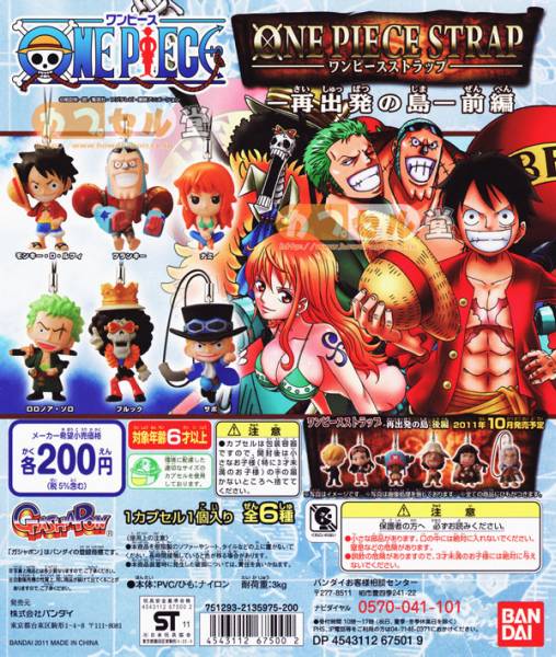 - カプセルトイ】PIECEワンピーストラップ再出発の島前編フルコンプ6種+POP【ルフィ ゾロ フランキー ブルック ナミ サボ