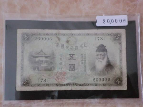 - ★ 大正兌換銀行券5円 大正武内5円 ★ No.301
