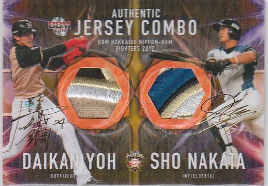 > BBM2012日本ハム 10枚限定金箔サインコンボパッチジャージカード 中田翔&陽岱鋼 即決