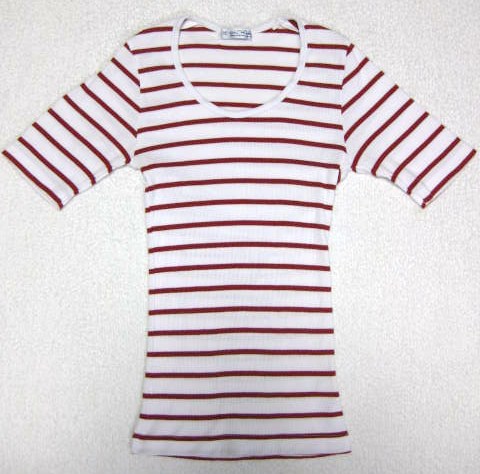 - Mサイズ位 半袖 カットソー 丸首 白×赤 ボーダー