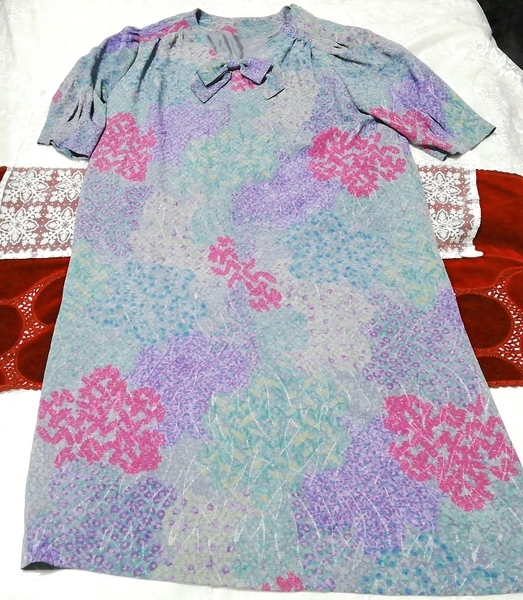 > 青アート柄ネグリジェチュニックワンピース Blue art pattern negligee tunic dress