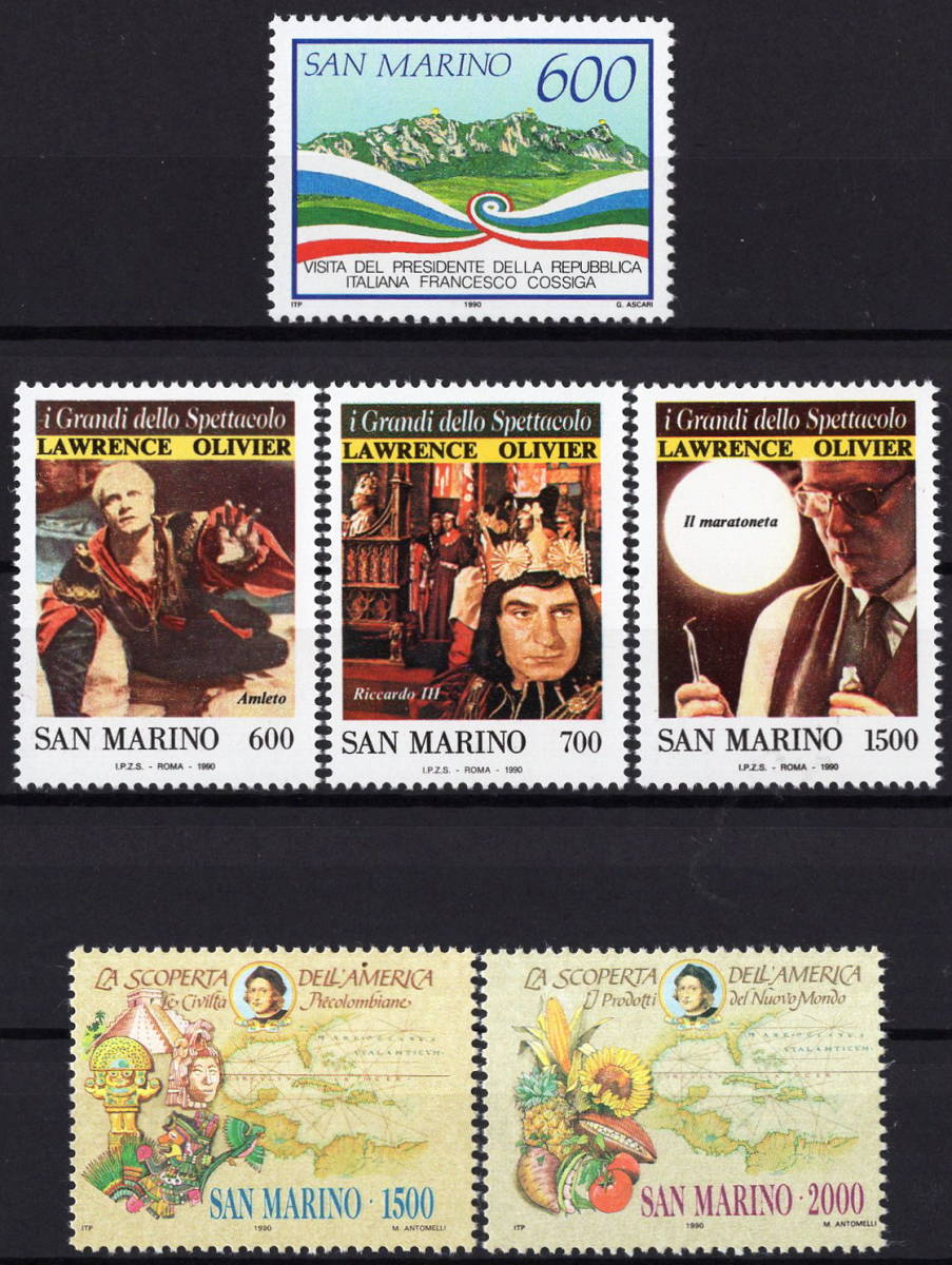 > ★1990年 サンマリノ - 「イタリア大統領訪問」1種完+「俳優-ローレンス・オリヴィエ」3種完+「アメリカ発見500年」2種完 未使用★VF-470