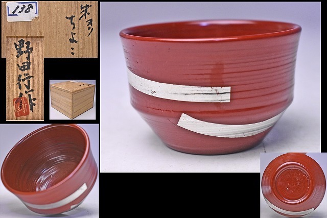 - 野田行作 ★ 朱ヌリちょこ ★ 共箱 ★ 漆器 ★ 銀彩 ぐい呑 ★ 洗練されたモダンなセンス ★ 酒器 ★