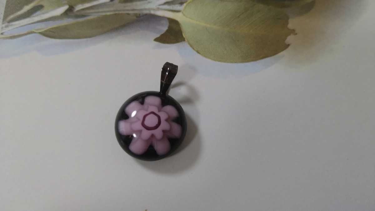 - □黒×紫・お花モチーフ・丸いペンダントトップ□