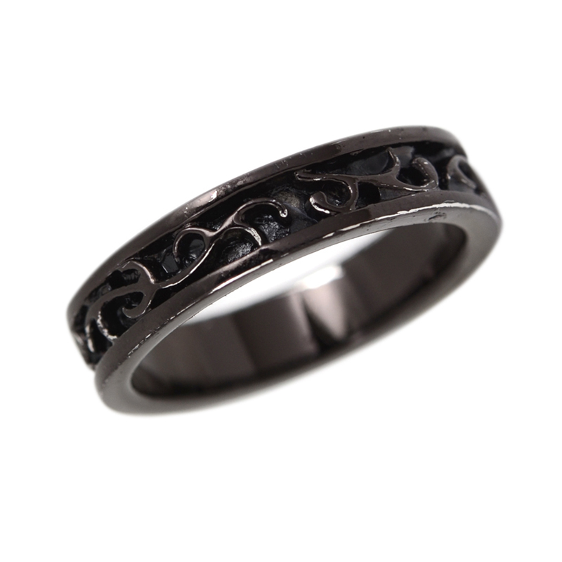 - ★人気★お勧め★漆黒★変色無★手入れ不要★肌に優しい★金属アレルギー&温泉&海水浴ご使用OK★ステンレスリング★ブラックアラベスク★