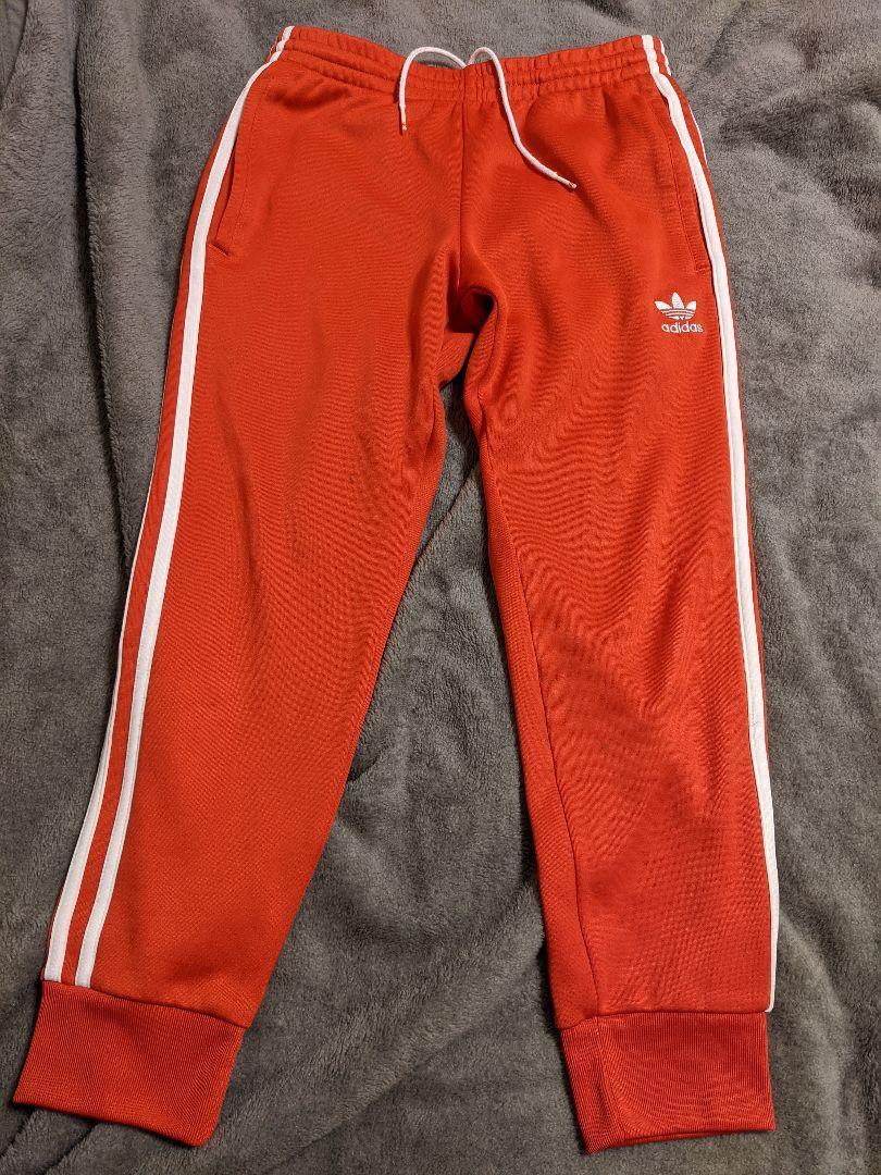 - M/アディダス トラック パンツ/ジャージ /レッド/ 赤 /検索/アンクル丈/ カフ/フィット/ジョガー/ユニセックス/スウェット ダンス 1107