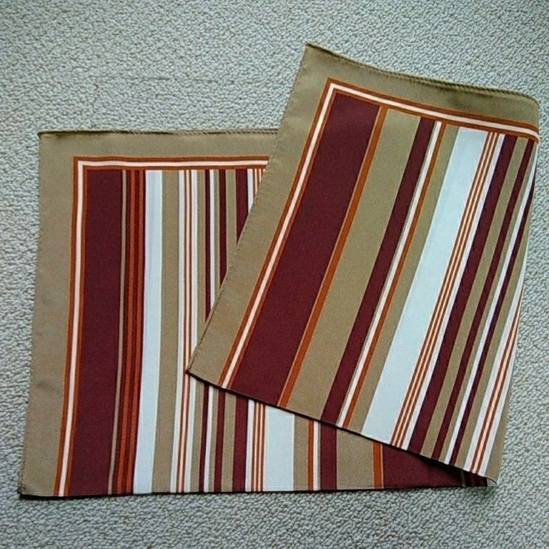 - ◎ スカーフ 茶ベージュ系ストライプ柄 制服 事務服 受付 OL オフィス 日本製 レディース 新品