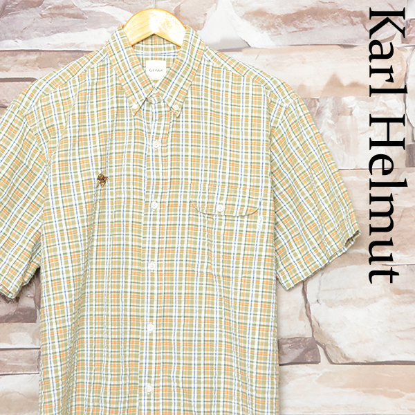 - KS4328 カールヘルム KARL HELMUT 半袖シャツ M 肩47 馬 ボタンダウン しわ加工 メール xq