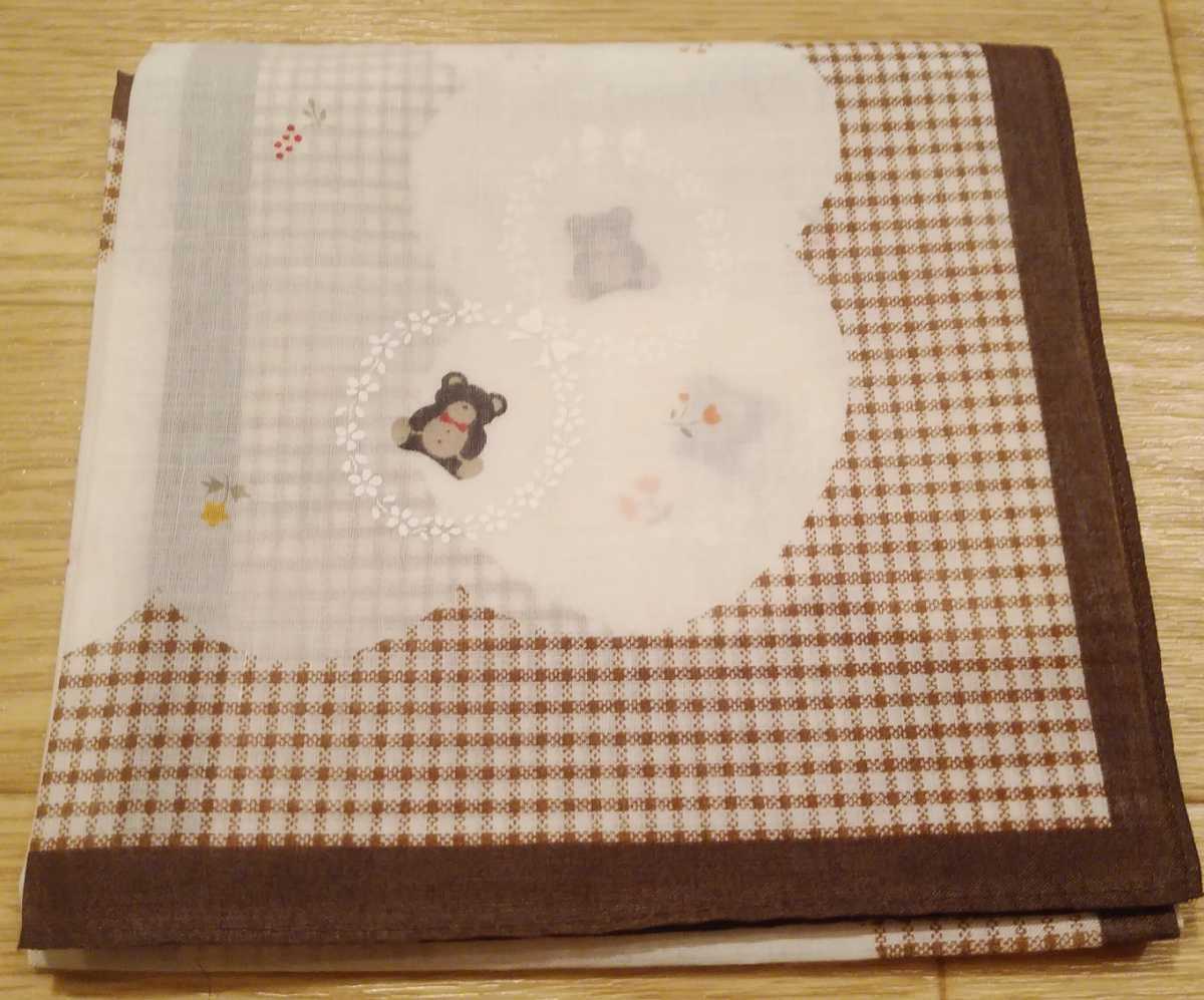 - 即決☆未使用☆当時物☆ブラウン ×ホワイト チェック柄 クマさん ハンカチ 90年代 綿100% ファンシー雑貨 定形外120円