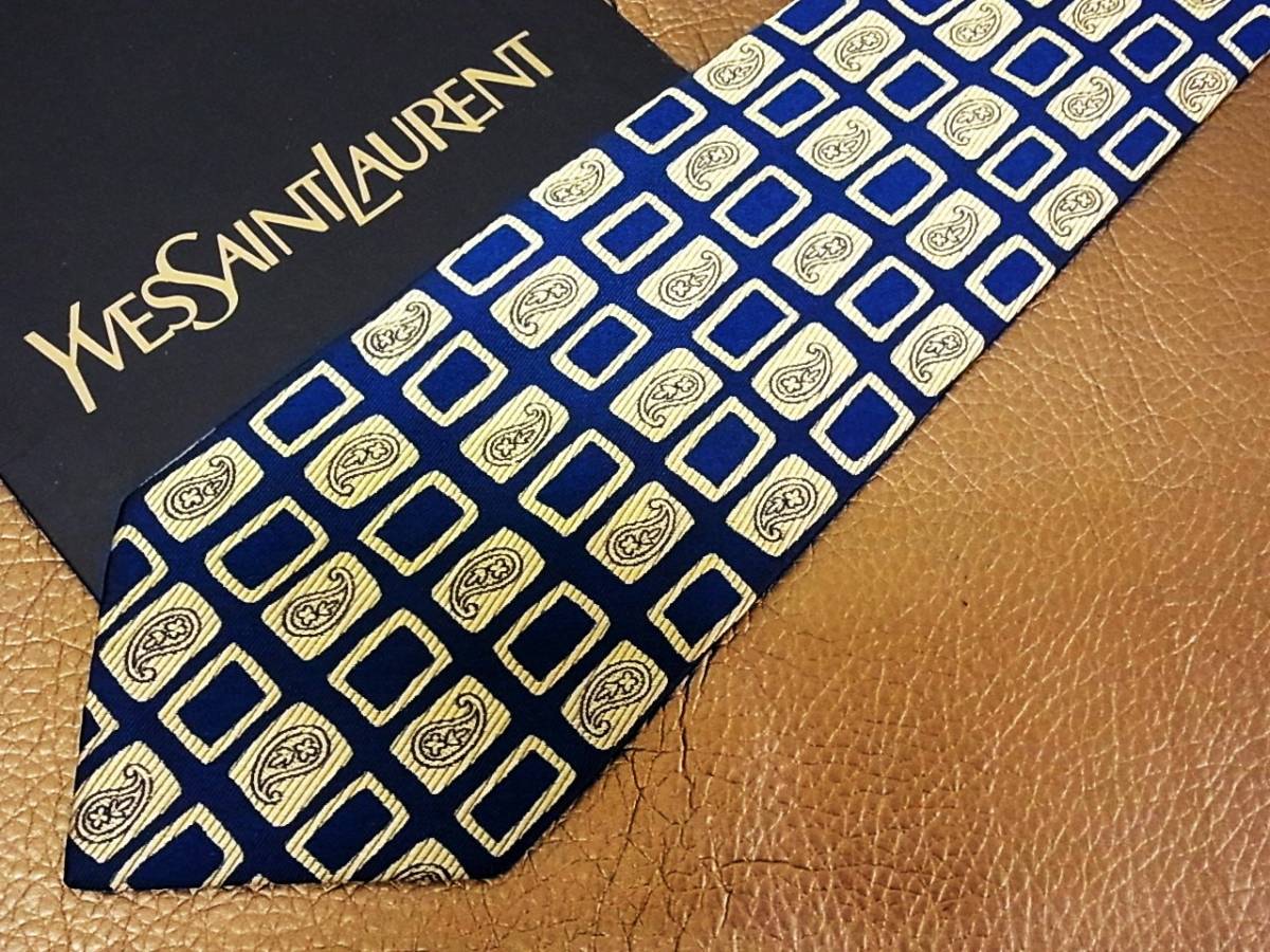 - №R3018♪良品 ♪【刺繍・ペイズリー】サンローラン【YSL】ネクタイ