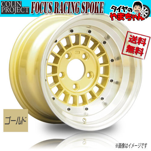 ホイール新品 4本セット Colin フォーカスレーシング スポーク ゴールド 14インチ 5H114.3 8J-13 4本購入で送料無料 ※キャップ別売