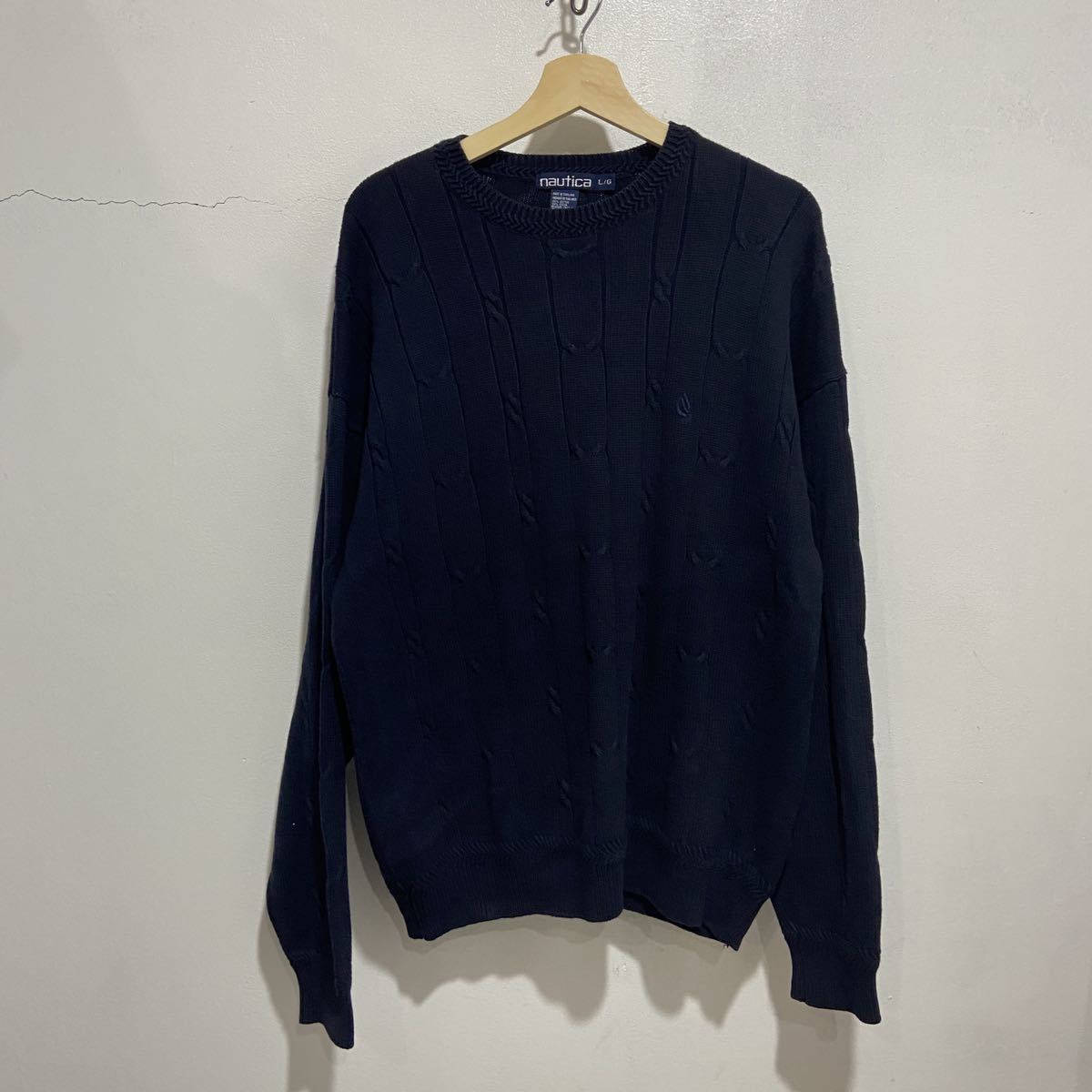- 送料無料☆ ☆90s☆nautica☆ケーブル編みコットンニット☆ワンポイント☆ネイビー☆