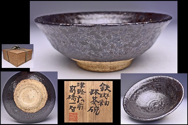 > 高橋一智 ★ 鉄斑釉 茶碗 ★ 共箱 ★ 味わいのある黒が茶映りの良さそうな逸品 ★ 青森 津軽 弘前 民芸陶 ★ 検 河井寛次郎 浜田庄司 ★