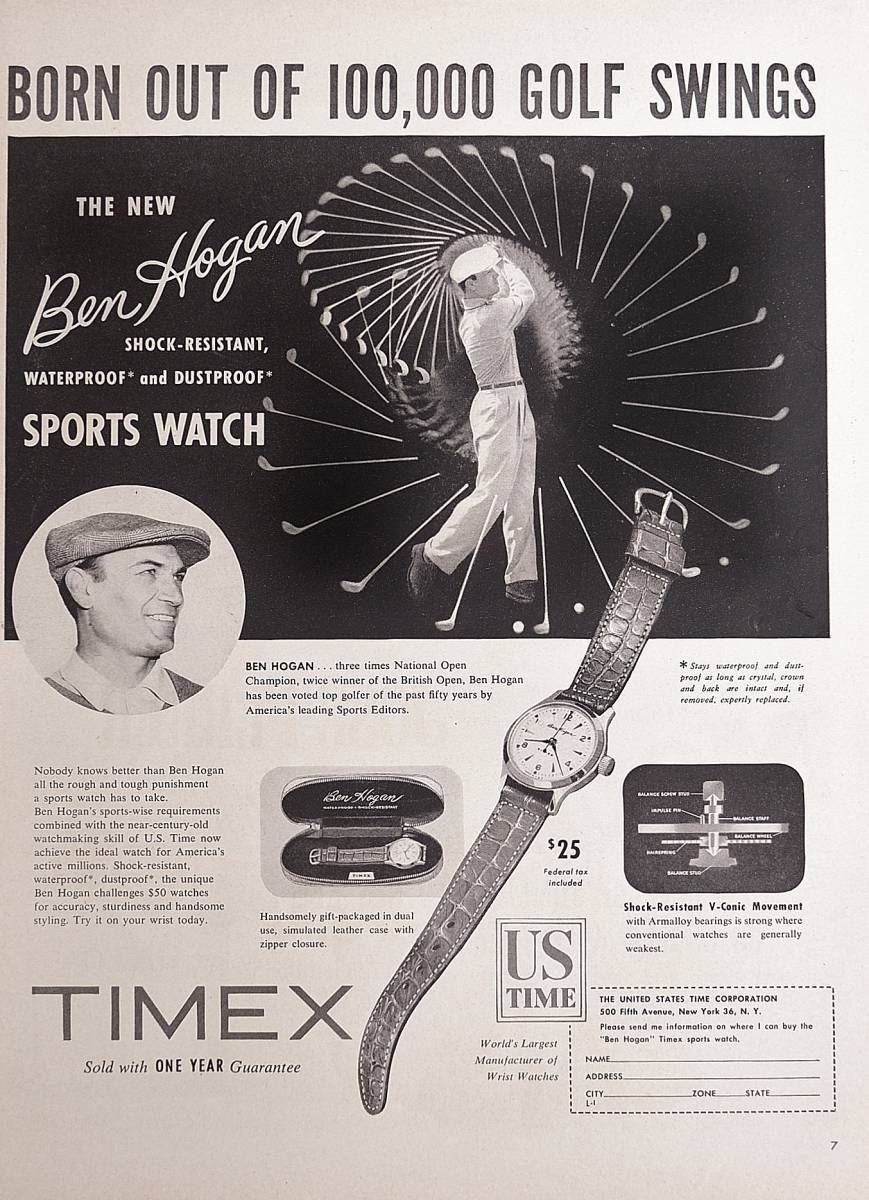 - 稀少!1950年代タイメックス 時計広告/Timex Watches/ベン・ホーガン/ゴルフ/O