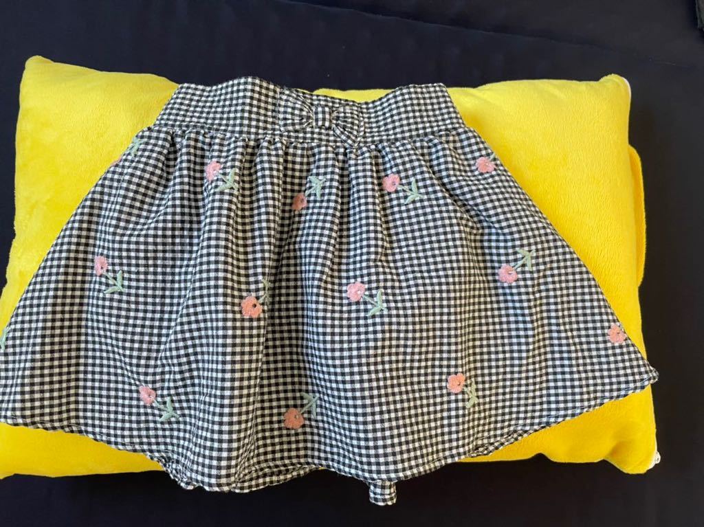 - 超美品 サッカースカート 裏地付き お花の刺繍がかわいい サイズ110 ブラック ホワイト フレアースカート ギンガムチェック