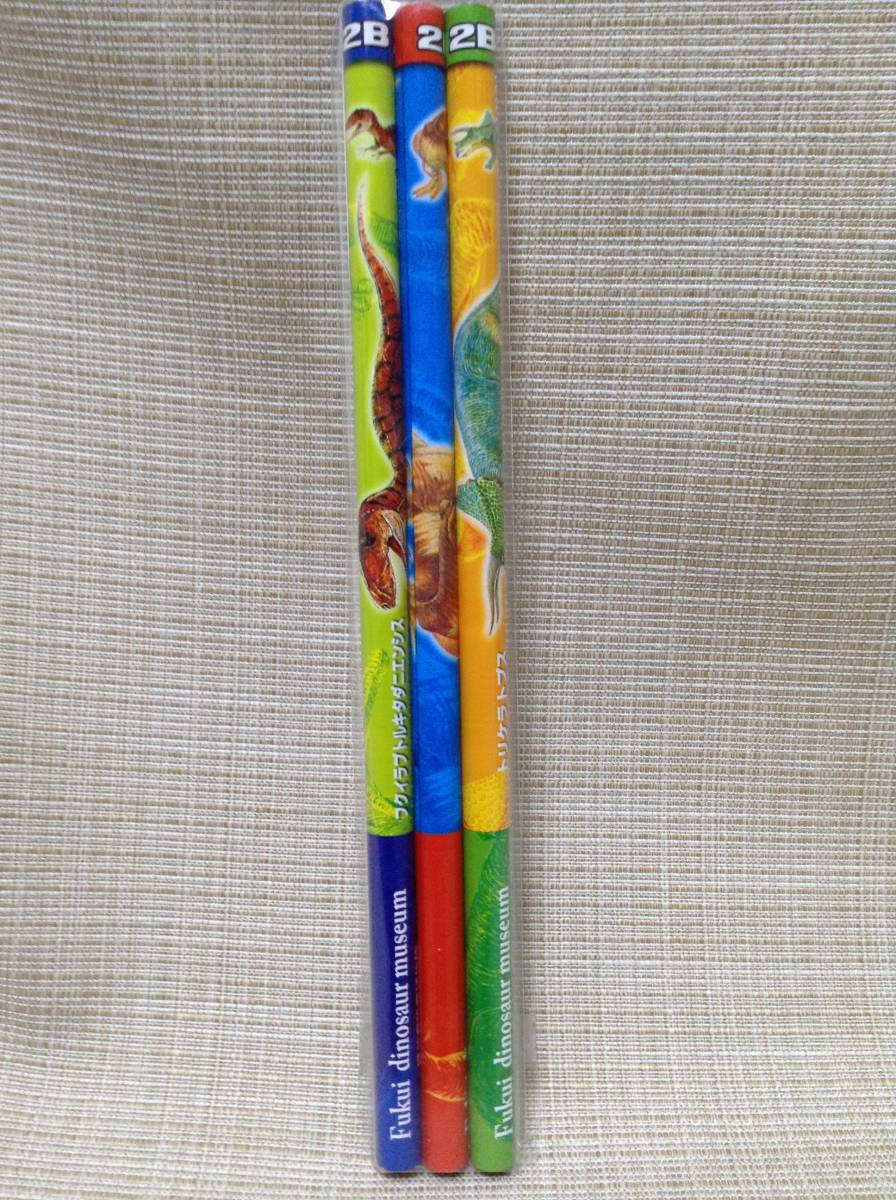 - 福井県恐竜博物館オリジナルかきかた鉛筆3本セット フクイラプトル,ティラノサウルス,トリケラトプス えんびつ 2B