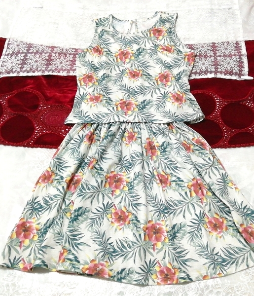 > 緑草花柄ツーピース風ノースリーブ ネグリジェ ミニワンピース Green flower pattern sleeveless negligee mini dress
