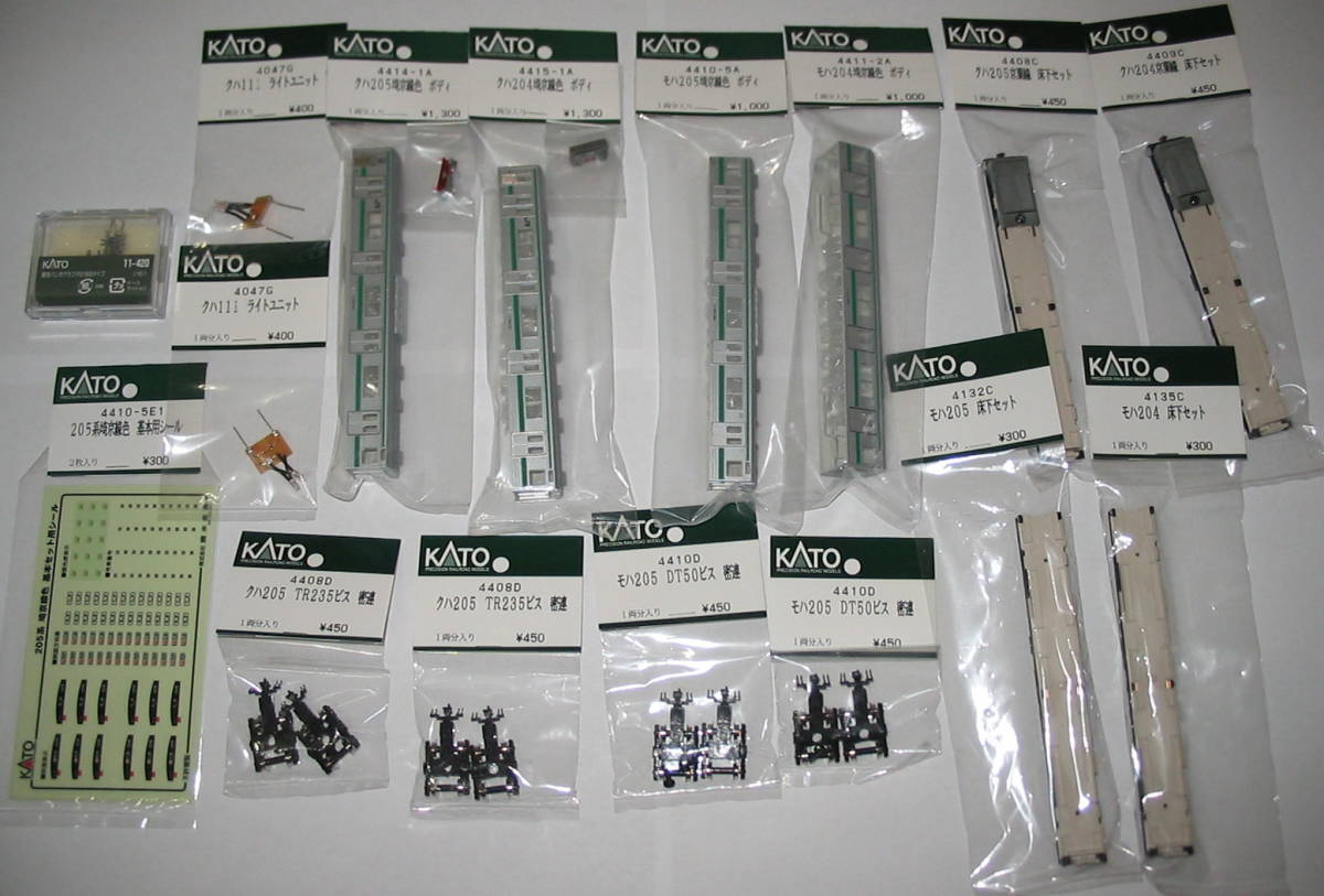 - 【送料無料】 KATO Assyパーツ 205系 埼京線色 ★ボディ 4両分 ★床下セット 4両分 ★台車 4両分 ★ライトユニット ★シール ★パンタ