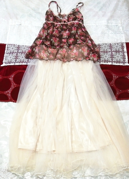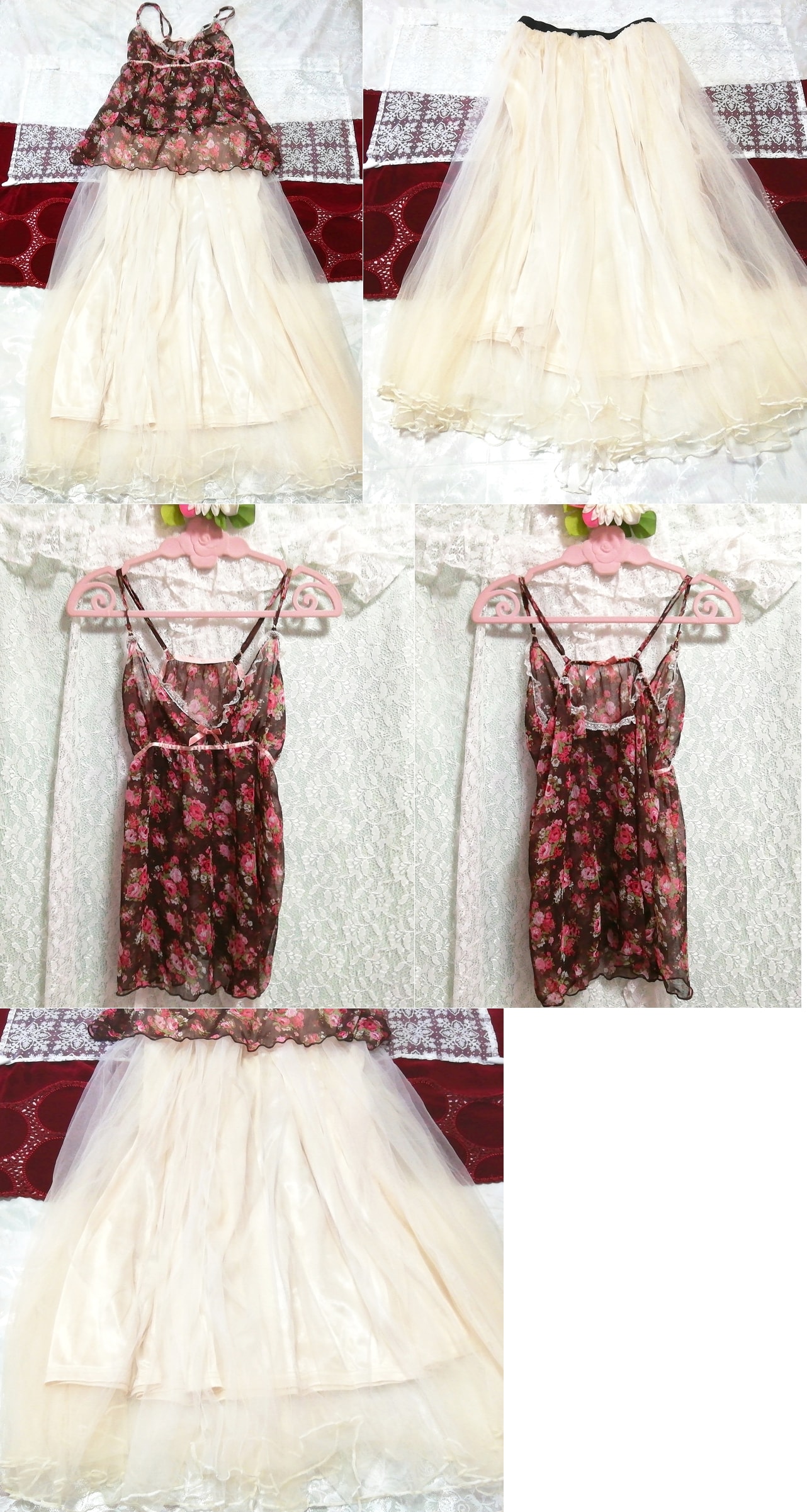 > 茶赤花シフォンキャミソール ネグリジェ フローラル白ロングスカート 2P Brown red chiffon camisole negligee floral white tulle skirt