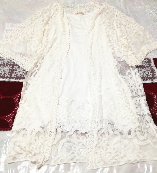 - 白レース羽織ガウン ネグリジェ ナイトウェア キャミソールベビードールドレス 2P White lace gown negligee nightwear camisole dress