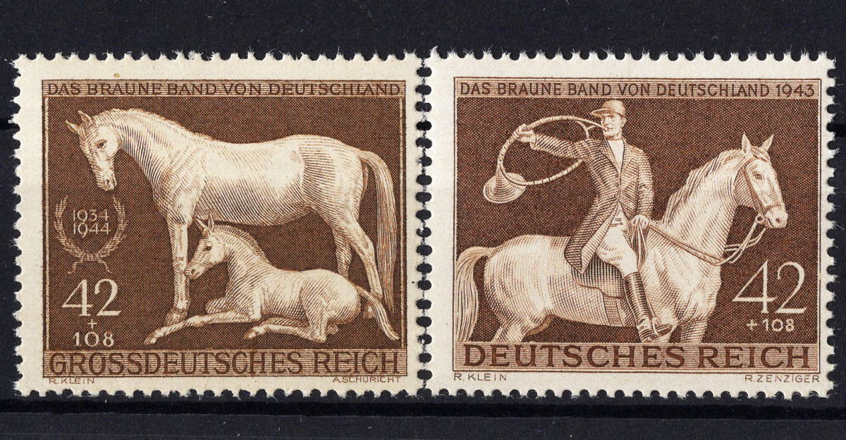 > ★1943-44年 ドイツ第三帝国 - 「ブラウン・バンド競馬」1種完+1種完 未使用(NH)(SC#B243.B283)★YG-936