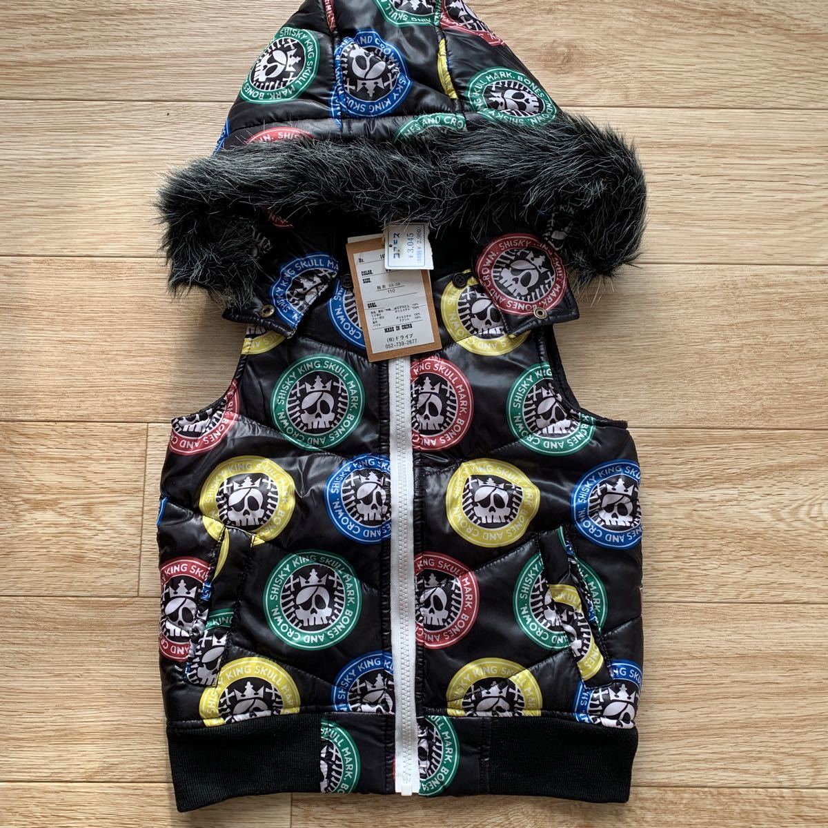 - ドクロ柄 ダウンベスト ブラック 110cm 難あり
