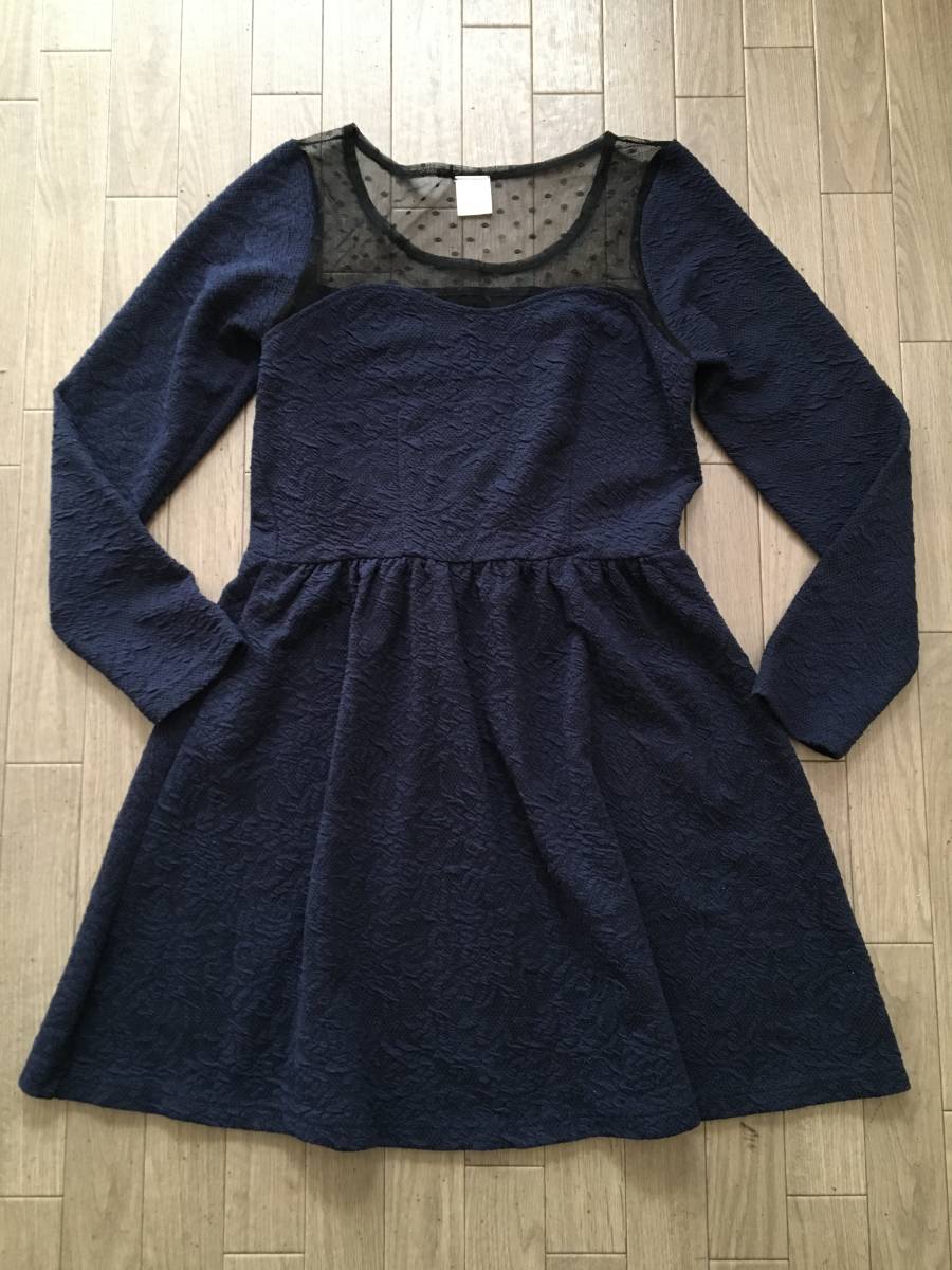 - USED美品☆RETRO GIRL 黒レース×ネイビー長袖ワンピース サイズM