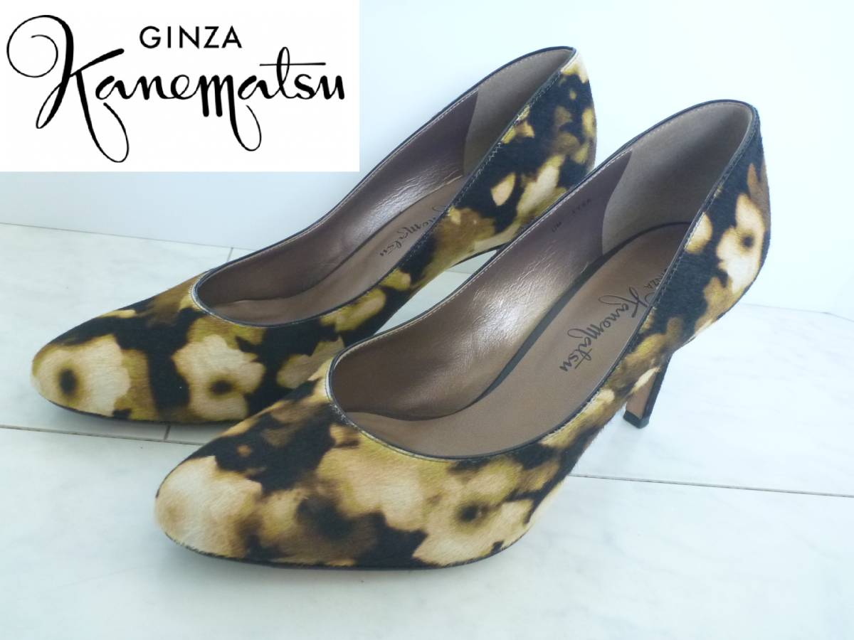 - 2.5万 美品 銀座かねまつ ★茶×ベージュ ハラコ素材 パンプス 24.5