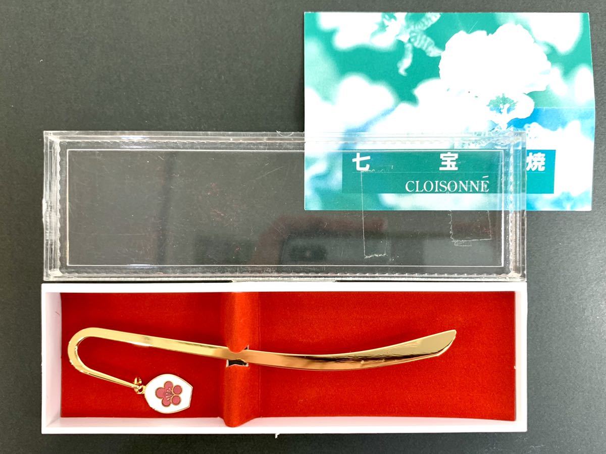 - 未使用品▼七宝焼 梅柄 ブックマーカー 本の栞 金色 ケース付き その1 管理2111 A-17