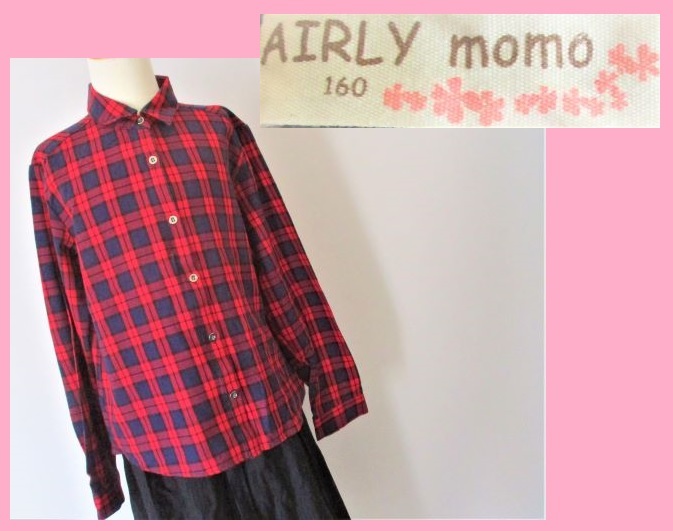 > 【010-25】AIRLYmomo★赤系チェック長袖シャツ/サイズ160