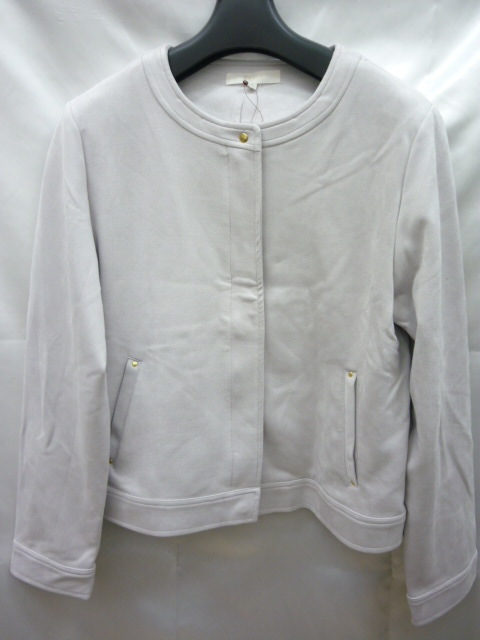 > 未使用 grove グローブ ノーカラー ジャケット M マシュマロタッチスエード ライトグレー レディース ワールド (50)