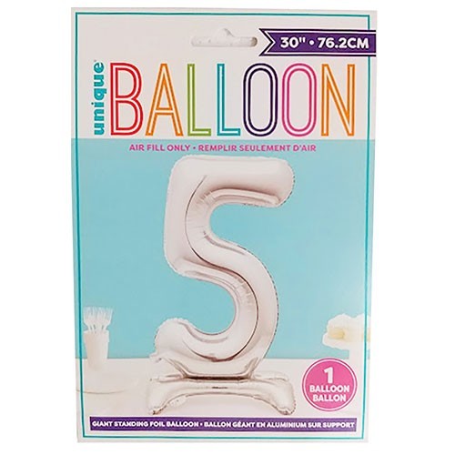 - 送料込 フォイル ナンバーバルーン スタンディング (#5 シルバー) 30 76.2cm 16062 風船 数字 数 大きい 誕生日 パーティーグッズ 飾り