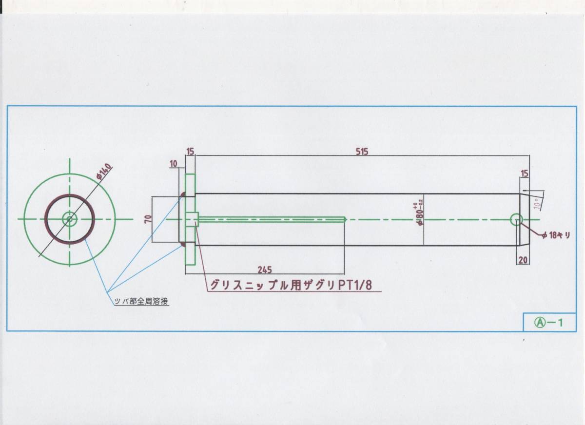 - NO933 Φ80用 溶接ツバ下515mm ニップル穴付きバケットピン 重機 パワーショベル