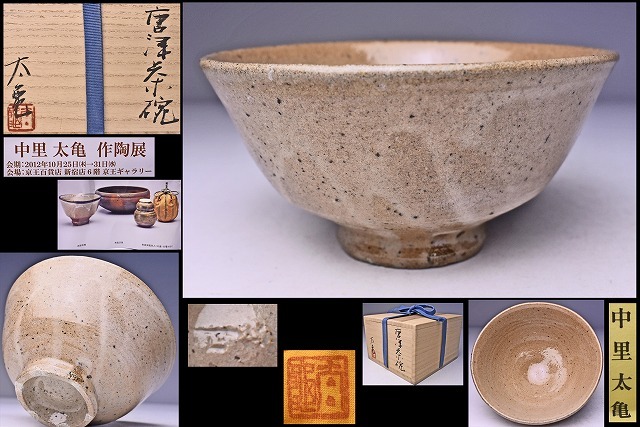 - 中里太亀 ★ 唐津 茶碗 ★ 共箱 共布 栞 個展DM ★ 父:中里隆 ★ 味わいのある逸品 ★ 茶道具 ★