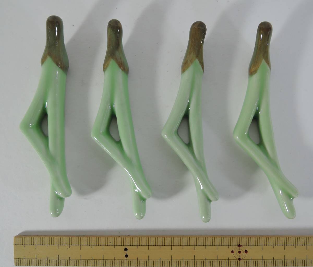 - ☆03E 昭和レトロ■松葉/松の葉/マツ葉 箸置き 陶器製 4個■未使用