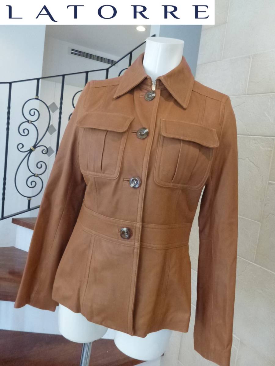 - 10万 美品 LATORRE(ラトーレ) ★ 羊革 レザー やわらかい革 キャメルブラウン ジャケット コート 9 M相当