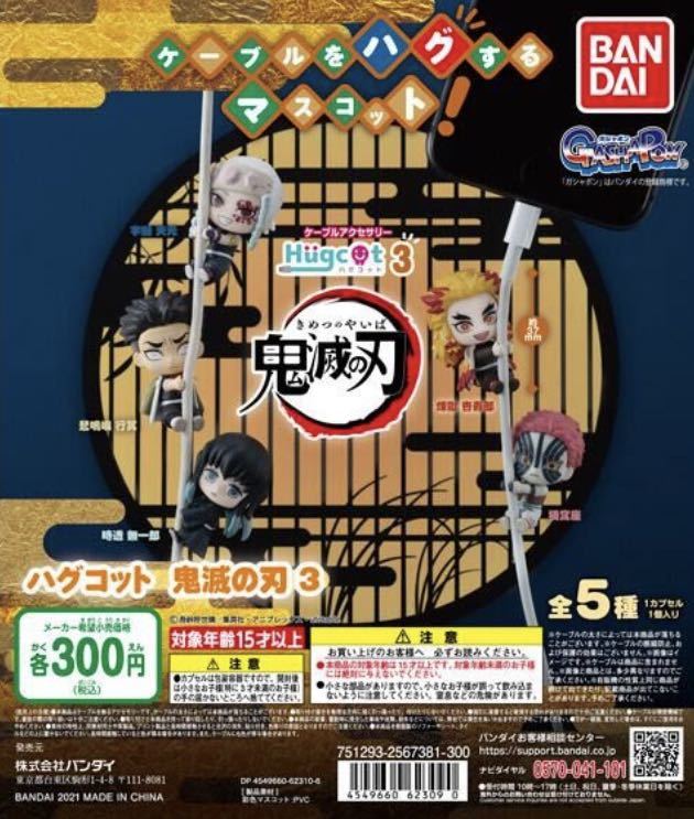 - ★鬼滅の刃★バンダイ ハグコット3 ガチャガチャ 猗窩座、宇髄天元、煉獄杏寿郎 他全5種類フルコンプセット