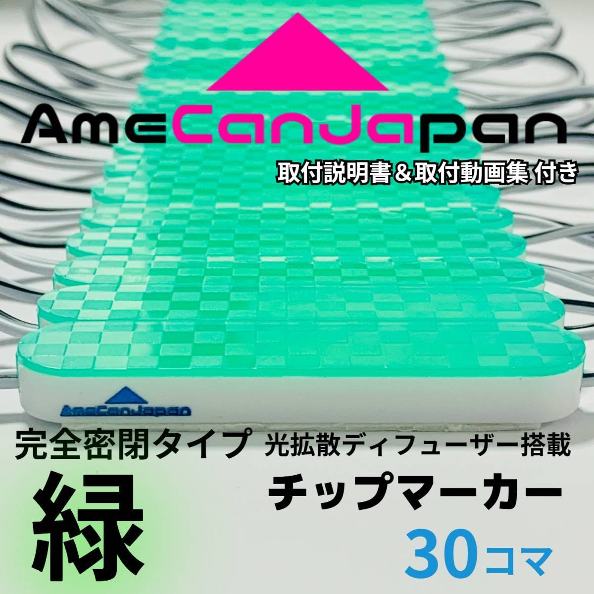> 第3世代 24V チップマーカー タイヤ灯 光拡散ディフーザー 完全密閉タイプ トラック用 サイド・シャーシマーカー 緑 30コマ AmeCanJapan