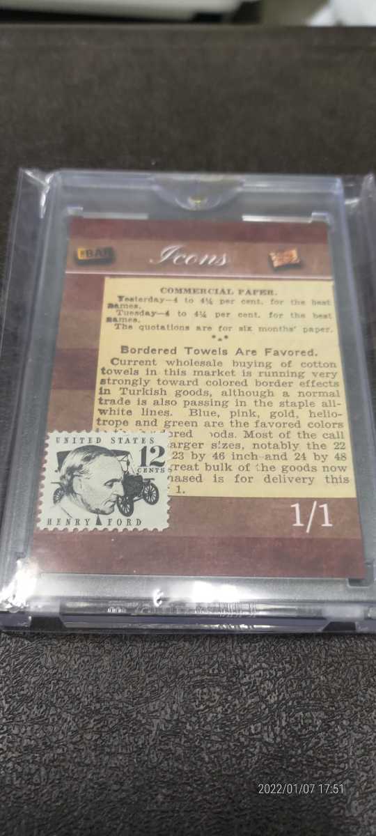 - ヘンリー・フォード 1927年ビンテージニュースペーパーレリックカード 1/1