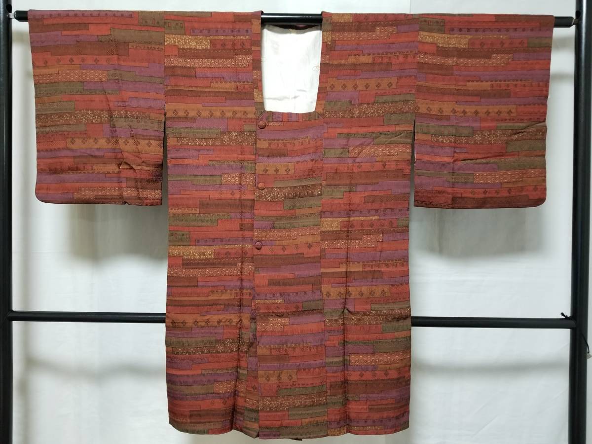 - 【桐輪】長丈.道行コート☆送料無料☆長丈*未使用品*美品{正絹*手描き染*袷仕立*道行コート}*丈101-裄64*横段に多種類文様*№3194