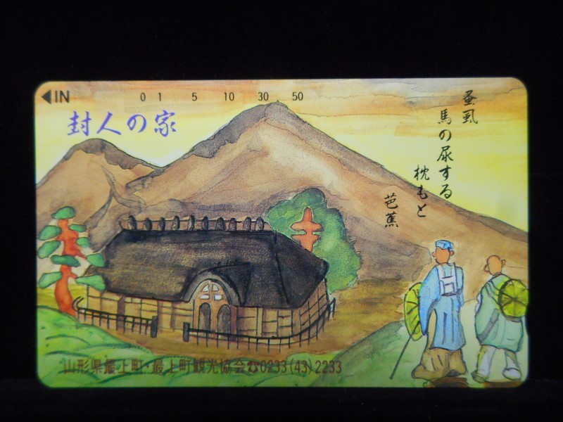 - テレカ 50度 封人の家 蚤虱馬の尿する枕もと 芭蕉 イラスト 未使用 T-2437