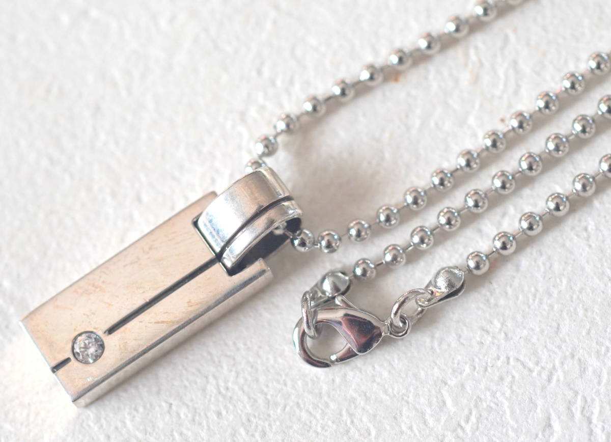 - シルバー925製トップ付き ジルコニア付きライン入り シンプルなレクタングルプレートのネックレス