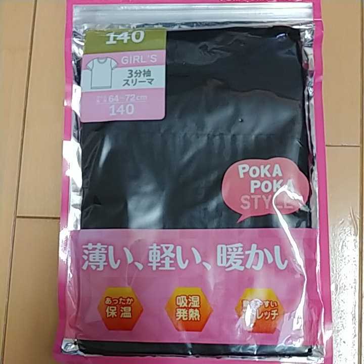 - ☆吸湿発熱☆保温☆ストレッチ☆3分袖スリーマー☆サイズ140黒